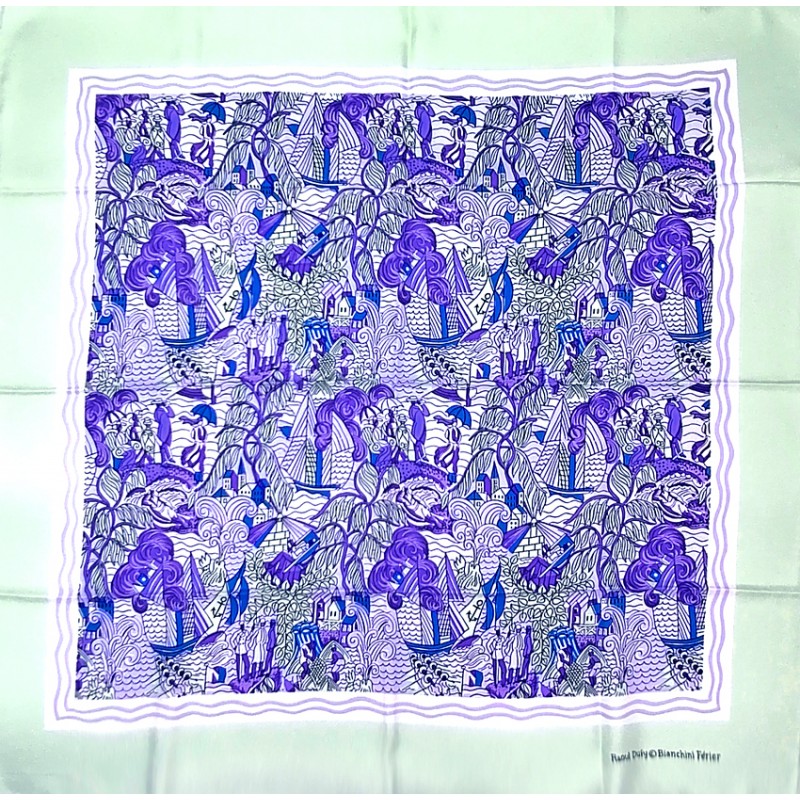Raoul Dufy (1893-1953) et Bianchini-Férier : un peintre, un industriel, deux acteurs de l’art et de la mode. De cette alliance fructueuse de l’esthétique et de la technique devaient naître des œuvres majeures de la création textile du début du XXe siècle. En amont de cette aventure : le créateur de mode Paul Poiret, avide de nouveauté, qui propose à Dufy de transposer sur tissu la technique de la xylogravure. En 1911 Dufy accepte la proposition de Charles Bianchini, grand soyeux de Lyon pour lequel il allait créer plus de 3000 dessins textiles jusqu’en 1929. Sa fantaisie naturelle liée à son travail de la couleur fait éclater les thèmes floraux, les motifs animaliers et les emprunts à l’imagerie orientale. « Grâce à Poiret et Bianchini-Férier, j’ai pu montrer que la décoration et la peinture se désaltèrent à la même source. »