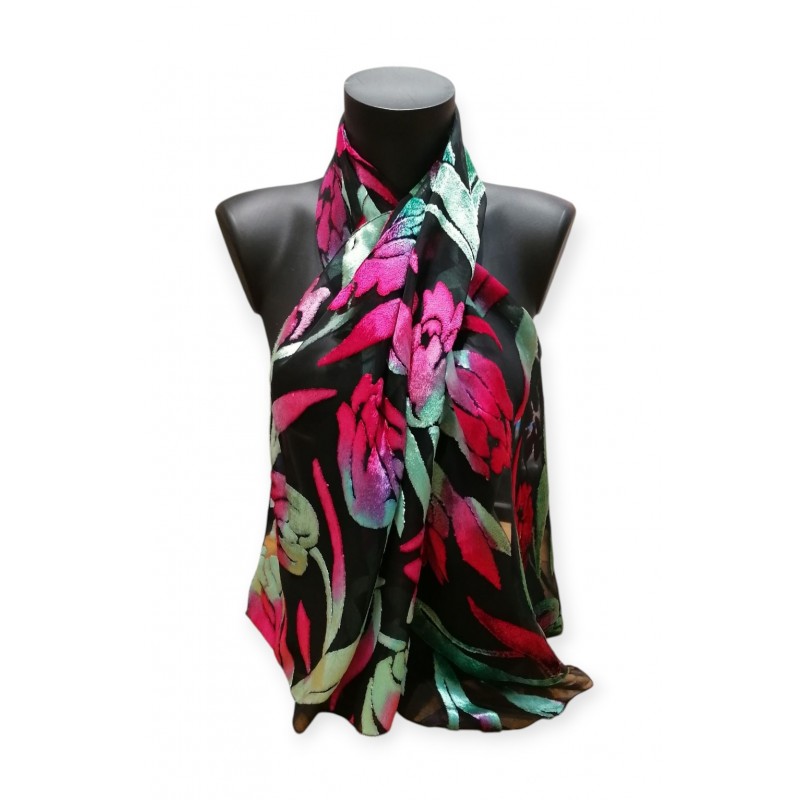 Tous nos foulards en panne de velours sont produits en toutes petites séries et ils sont tous peints à la main, donc chaque pièce est unique. SI LE COLORIS N'EST PAS SPECIFIE dans le nom du produit, il est conseillé de nous contacter avant de passer commande, nous pouvons vous envoyer des photos des coloris disponibles en ce moment.