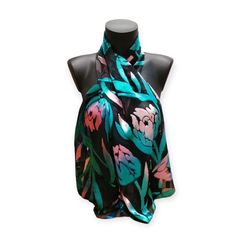 Tous nos foulards en panne de velours sont produits en toutes petites séries et ils sont tous peints à la main, donc chaque pièce est unique. SI LE COLORIS N'EST PAS SPECIFIE dans le nom du produit, il est conseillé de nous contacter avant de passer commande, nous pouvons vous envoyer des photos des coloris disponibles en ce moment.