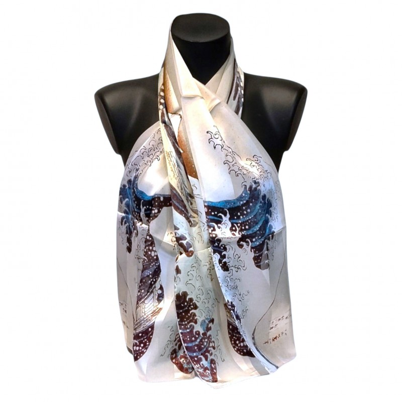 Cette estampe est l'œuvre la plus connue de Hokusai et la première de sa série « Trente-six vues du mont Fuji », dans laquelle l'utilisation du bleu de Prusse renouvelait le langage de l'estampe japonaise. La gracieuse montagne enneigée se tient imperturbable contre le bleu profond de l’horizon. Cependant elle est réduite à un petit monticule comparé à la force dominante de la vague qui menace d’engloutir les bateaux. Une telle manipulation de la composition est typique de beaucoup des œuvres de Hokusai. Cette gravure lui valut un succès immédiat au Japon, puis en Europe.