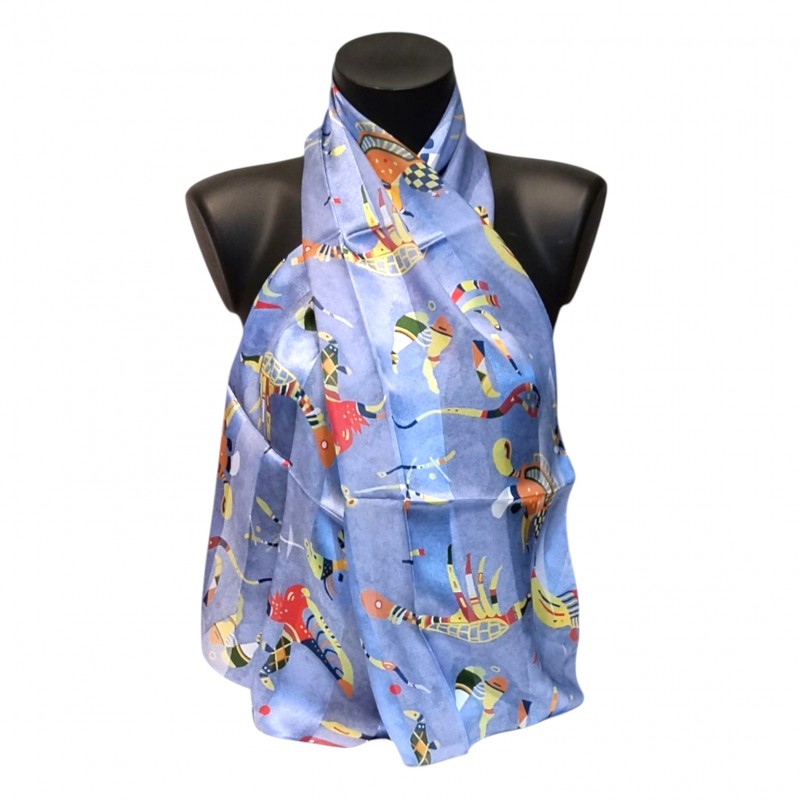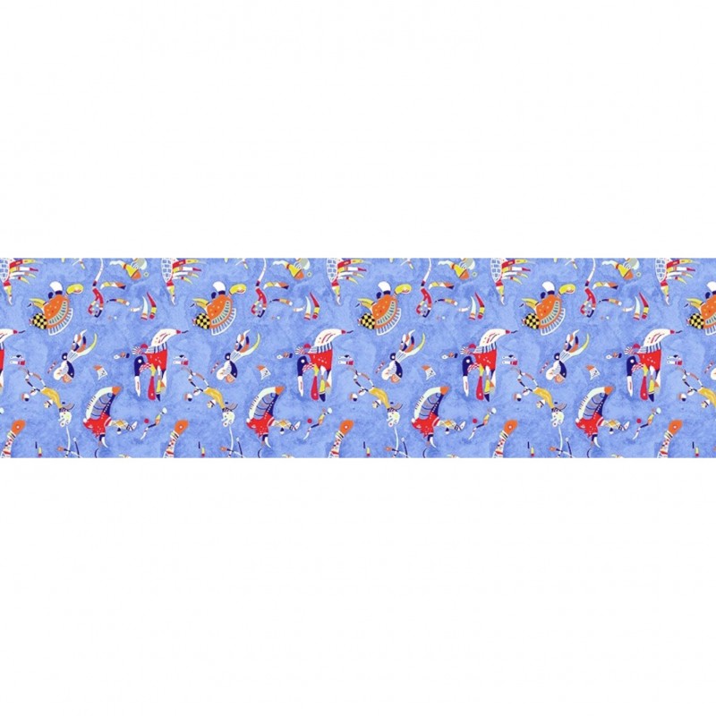 Sous des formes diverses, un contenu spirituel a toujours guidé l’œuvre de Wassily Kandinsky (1866-1944). On retrouve ici, constellé de figures imaginaires, le bleu cher à l’artiste, un symbole d’optimisme et de spiritualité malgré les malheurs du temps.