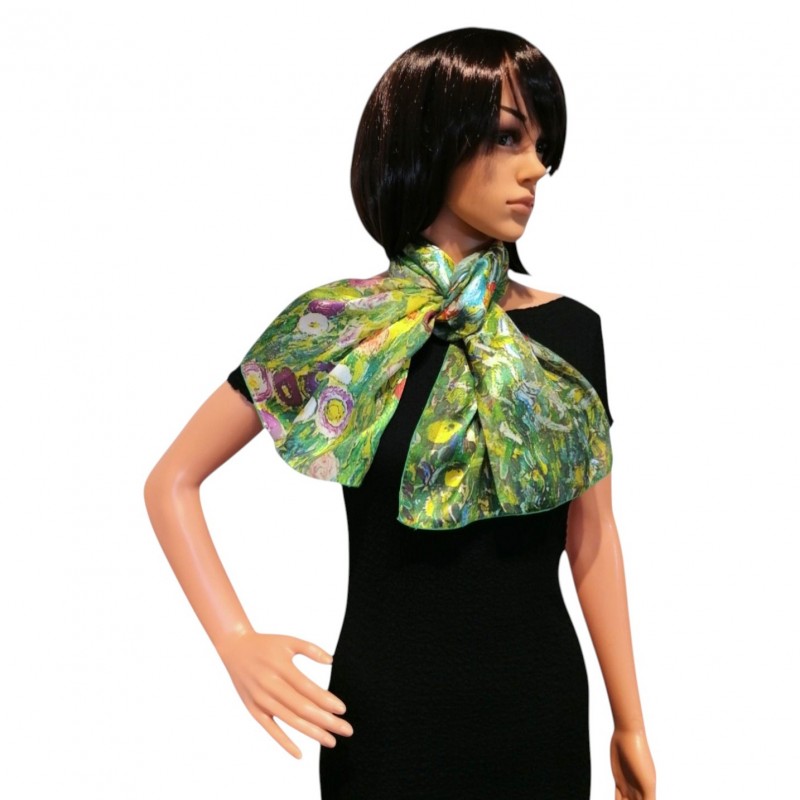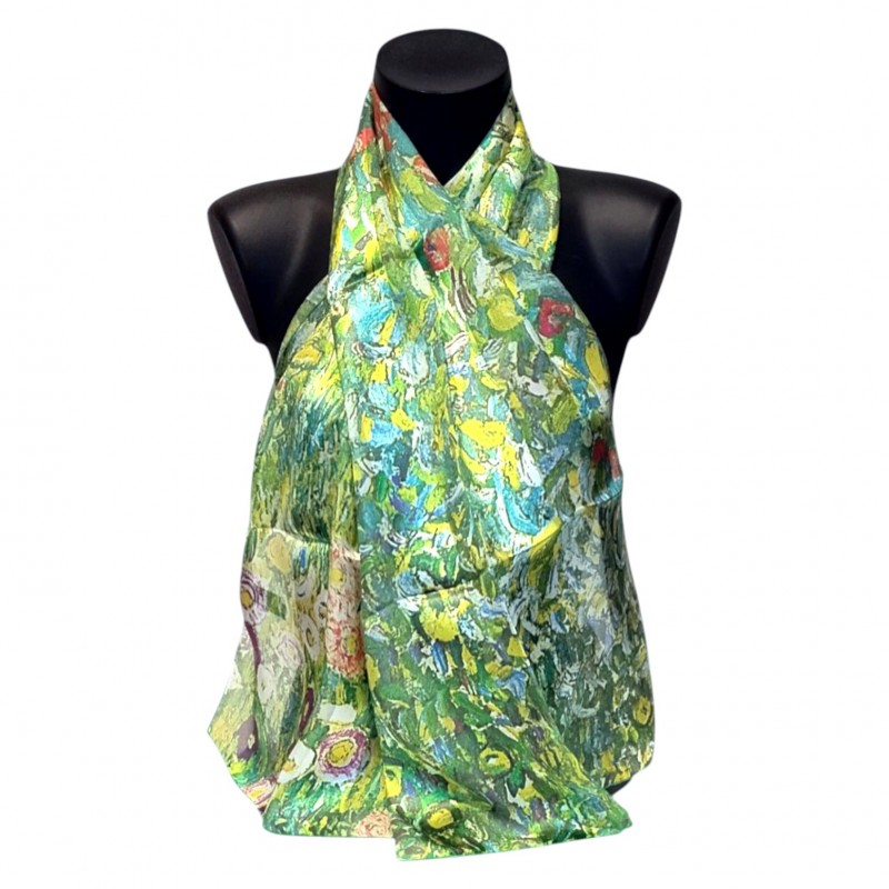 Alors que dans ses portraits les conventions (sans parler de la vanité du modèle) exigeaient une fidélité persistante à la vraisemblance volumétrique, dans ses paysages Klimt était plus libre à la fois dans sa manière de voir et dans ses objectifs ultimes. Les paysages (sans personne d'autre à plaire que Klimt lui-même) sont les œuvres les plus purement artistiques de son œuvre, démontrant la recherche du peintre pour la forme, la couleur et la texture dans leur essence. En particulier dans ses derniers paysages plus abstraits, Klimt a atteint une unité de conception qui place ces œuvres, comme les derniers paysages de Claude Monet, à l'avant-garde du modernisme. Ce détail du "Pommier I", l’un des chefs d’œuvres de l’artiste autrichien, laisse apparaître les touches pointillistes qui créent l'ornement petit et touffu de l'arbre, qui donne un caractère frémissant et une structure légère à lʼoeuvre.