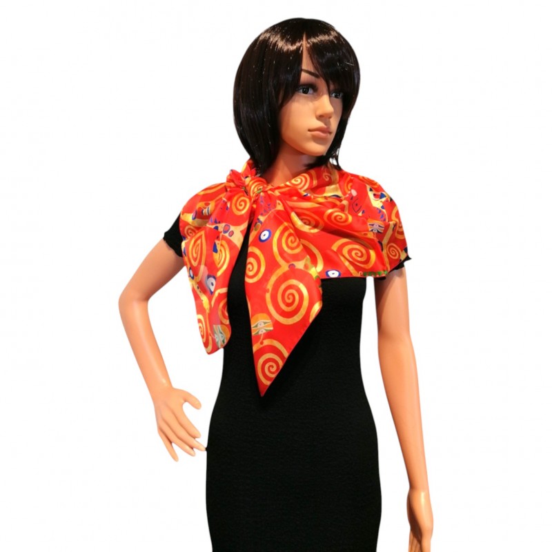 | Coloris | Fond rouge, motifs beige, marine, vert |
