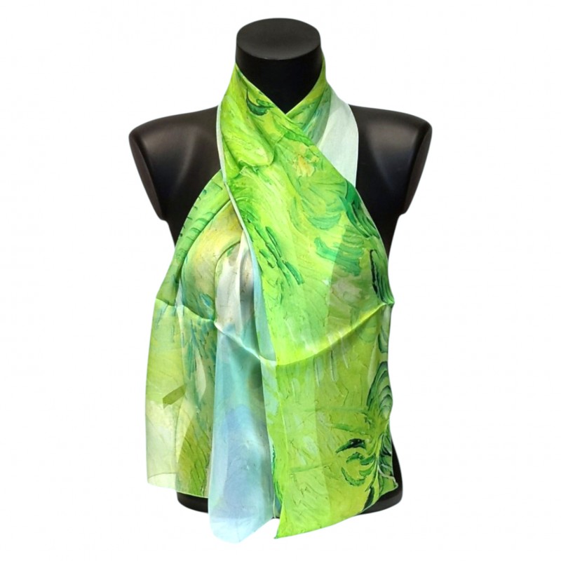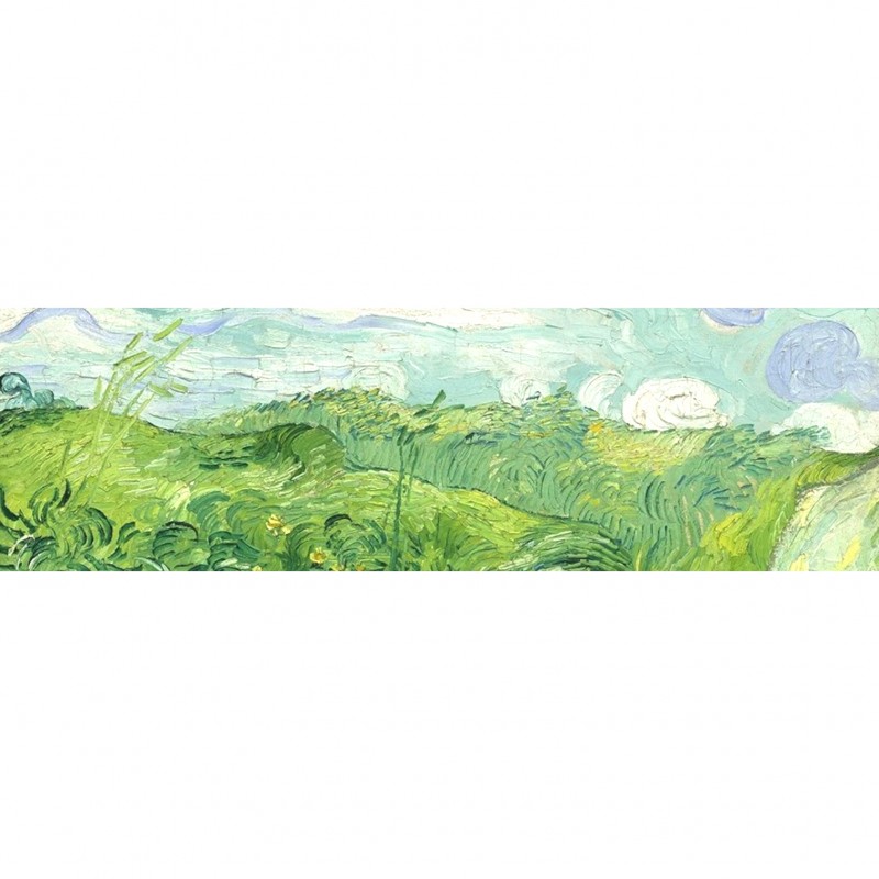 Vincent van Gogh est l’un des artistes le plus universellement reconnu de son temps. Ici, ses touches de pinceau expriment le mouvement fluide du blé balayé par le vent, les ondulations représentées à la limite de l’abstraction. Au-dessus, les nuages tournoient en spirales, proche de la calligraphie. Pour l’artiste, son retour au Nord de la France était comme un retour aux sources où ses couleurs chaudes et vibrantes du sud étaient remplacées par les tonalités sobres et douces du vert et du bleu.