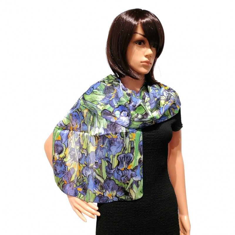 Vincent Willem van Gogh (1853-1890) est l’un des peintres les plus connus au monde au début du XXI° siècle. Son œuvre, pleine de naturalisme, inspirée par l’impressionnisme et le néo-impressionnisme, annonce le fauvisme et l’expressionnisme. « Les iris » est une peinture influencée à la fois par la nature autour de lui et par des gravures japonaises sur bois du 17°siècle : contours très marqués, angles inhabituels et des couleurs en aplat. Il n’y a pas de dessins préliminaires des Iris. Van Gogh considérait cette peinture comme une étude en elle-même. Elle a été présentée au Salon des Indépendants en septembre 1889.